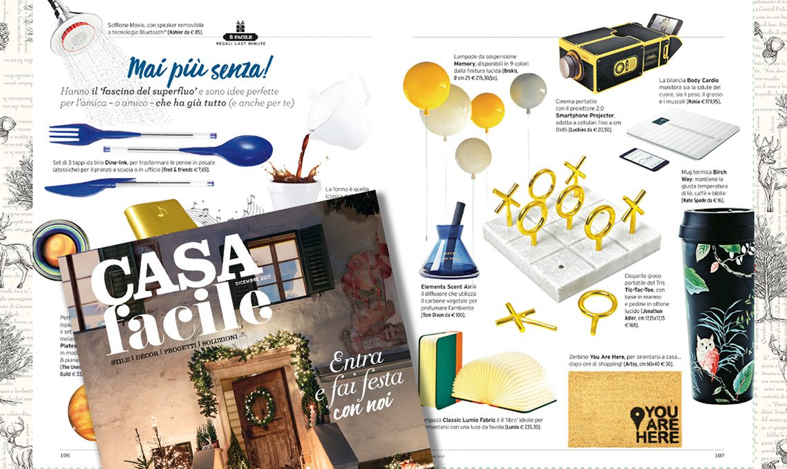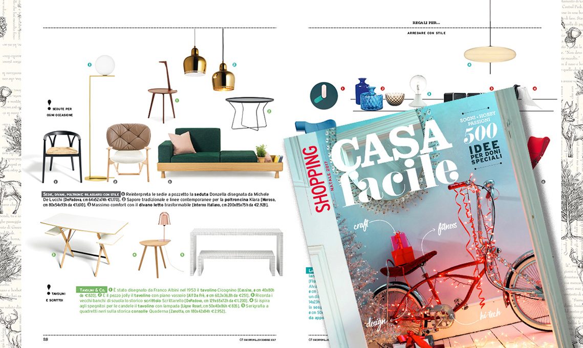 Il nuovo numero di CasaFacile ti aspetta in edicola dal 5 dicembre 2017 con, a scelta, l'allegato speciale Shopping Natale, 81 pagine e 500 idee regalo per ogni passione: per l'aspirante chef, per l'amico tecnologico, per il fitness addicted, per i bambini, per gli animali di casa, per i globetrotter, per gli amanti del giardinaggio e tanto altro!