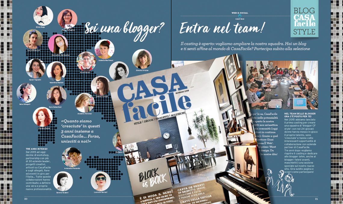 Sei blogger? Entra nel team di CasaFacile, il casting è aperto! Per saperne di più, a partire dal 4 gennaio 2018 corri in edicola e clicca qui.