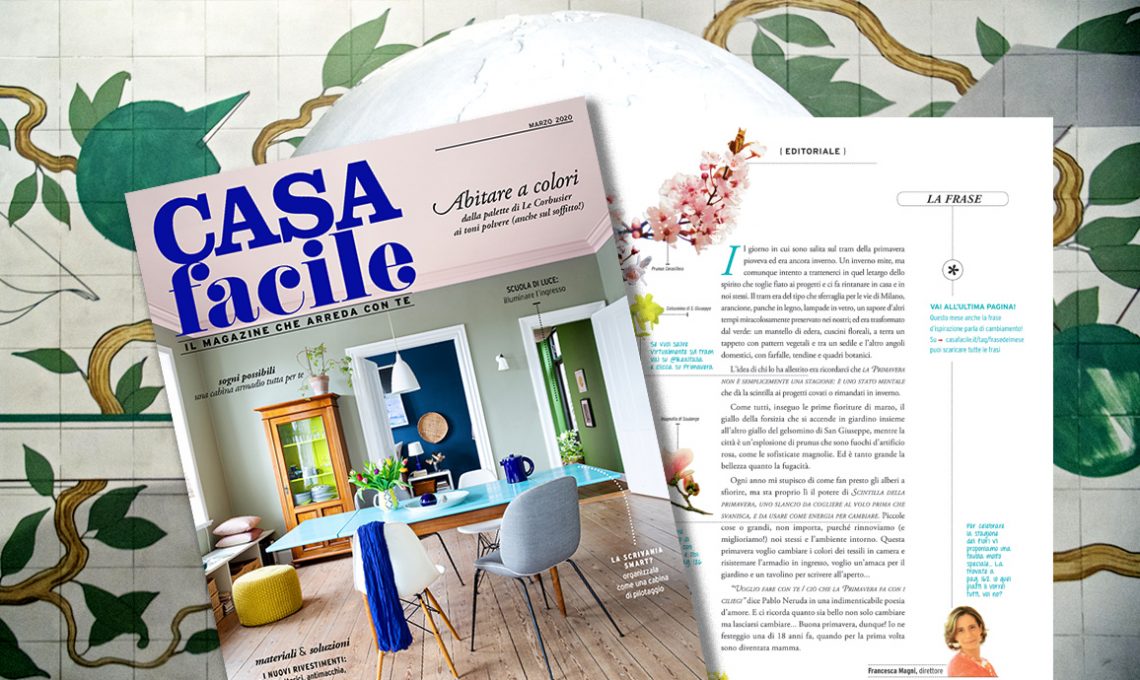 Occhi aperti e smartphone alla mano, gira per casa alla ricerca del dettaglio perfetto in stile CF! Fotografa un angolo che consideri particolarmente riuscito. E se non ne hai ancora uno, crealo. Cerchi un’idea? Puoi ritagliare, incorniciare e ambientare la frase che trovi a pag. 174 del nuovo CasaFacile in edicola dal 4 marzo 2020!
