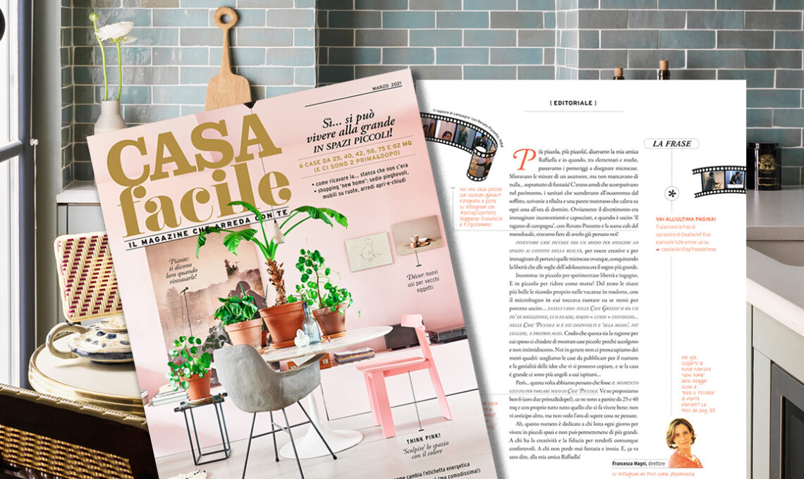 Ah, questo numero è dedicato a chi lotta ogni giorno per vivere in piccoli spazi e non può permettersene di più grandi. A chi ha la creatività e la fiducia per renderli comunque confortevoli. A chi non perde mai fantasia e ironia. E, ça va sans dire, alla mia amica Raffaella!