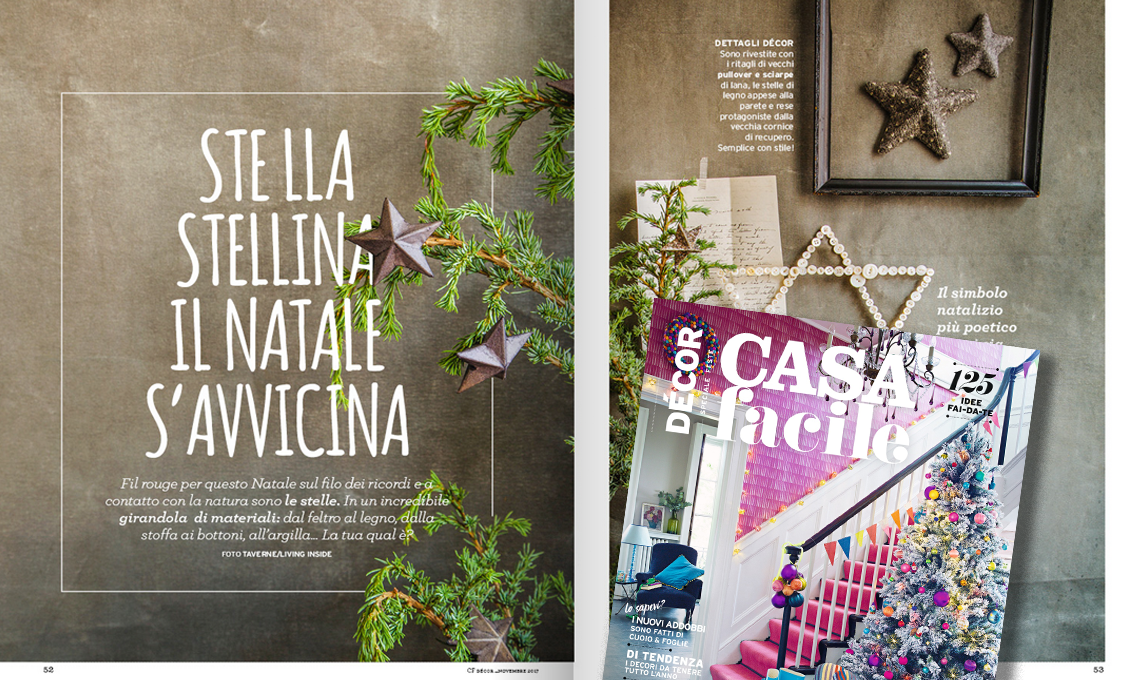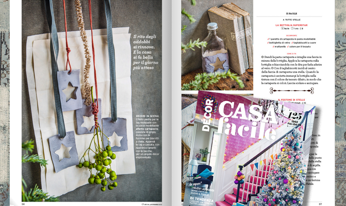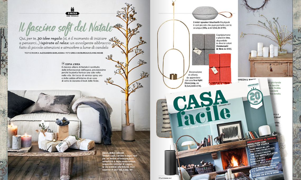 Dal 7 novembre 2017 il nuovo numero di CasaFacile ti aspetta in edicola. In allegato, a scelta, il nuovo CasaFacile Décor speciale feste, novembre è il momento giusto per iniziare a creare l'atmosfera del Natale e pensare ai regali da fare.