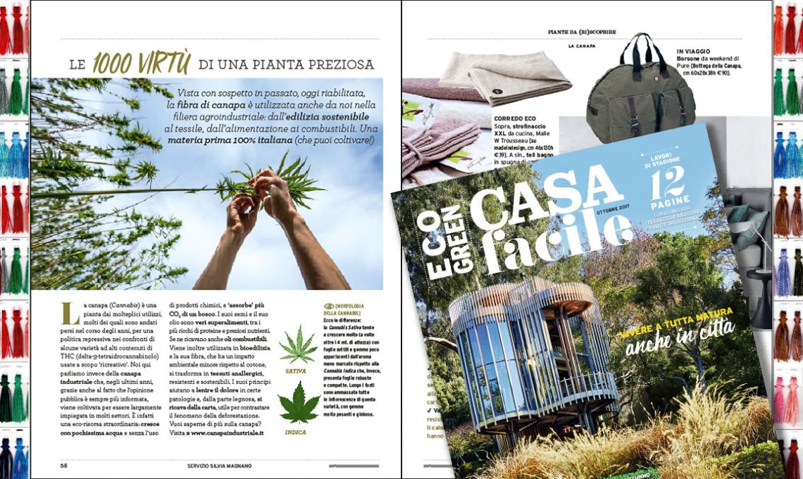Dal 5 ottobre 2017 trovi in edicola il nuovo numero di CasaFacile con l'allegato Eco-Green, dai mobili fatti con la canapa, ai tetti verdi a un viaggio alle Azzorre: 80 pagine dedicate alle ultime tendenze dell'abitare 'naturale' e a basso impatto ambientale. Più i lavori di stagione per terrazzo e giardino.