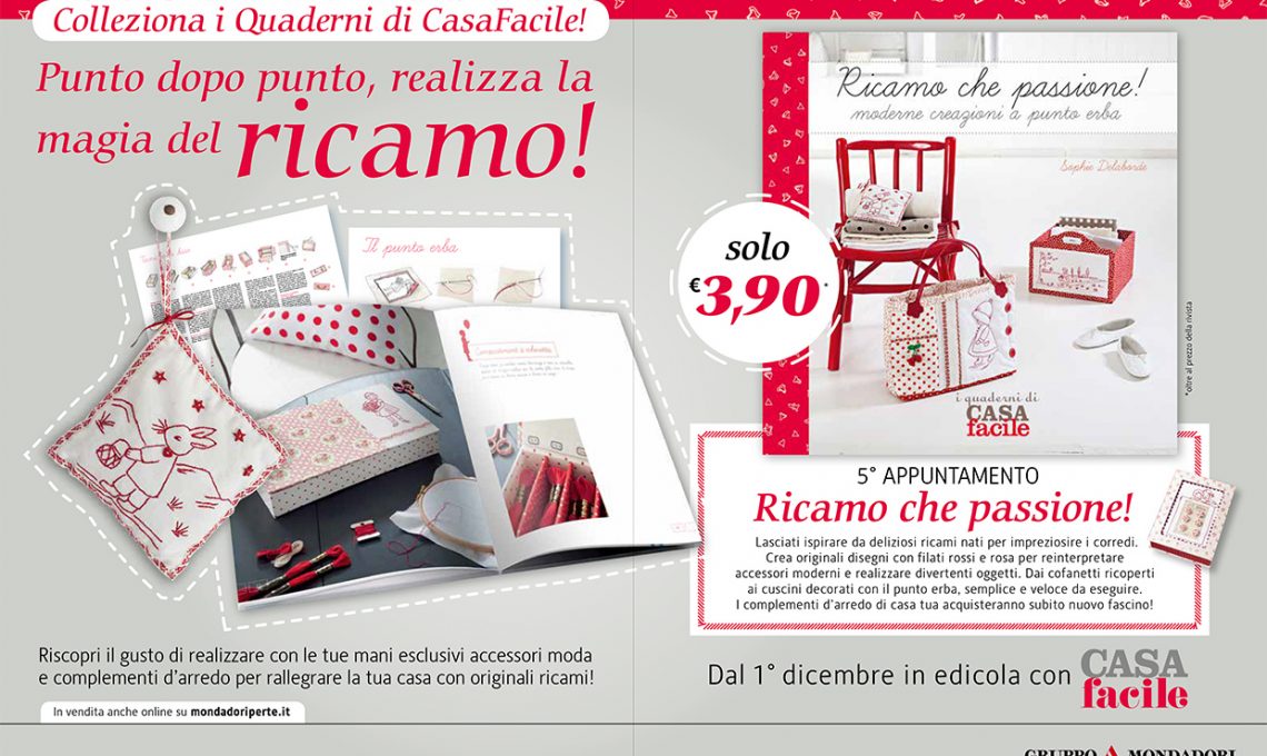 In uscita con CasaFacile dal 1 dicembre il Quaderno dedicato al ricamo con istruzioni passo passo per creare moderne creazioni a punto erba