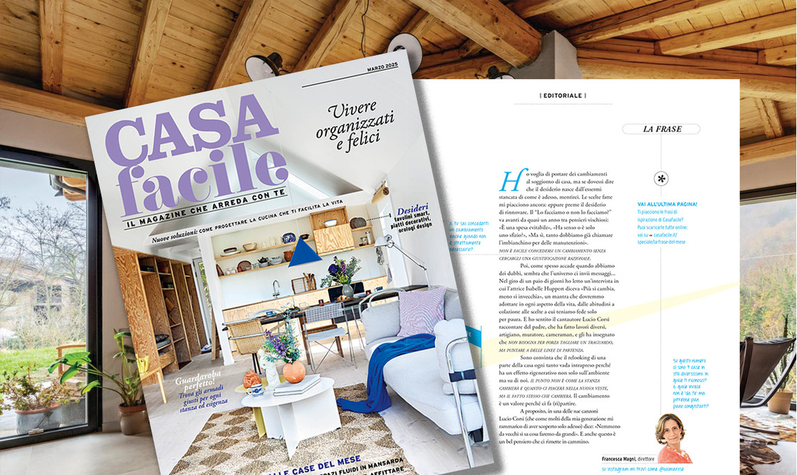 Poi, come spesso accade quando abbiamo dei dubbi, sembra che l’universo ci invii messaggi... Nel giro di un paio di giorni ho letto un’intervista in cui l’attrice Isabelle Huppert diceva «Più si cambia, meno si invecchia», un mantra che dovremmo adottare in ogni aspetto della vita, dalle abitudini a colazione alle scelte a cui teniamo fede solo per paura. E ho sentito il cantautore Lucio Corsi raccontare del padre, che ha fatto lavori diversi, artigiano, muratore, cameraman, e gli ha insegnato che non bisogna per forza tagliare un traguardo, ma puntare a delle linee di partenza.