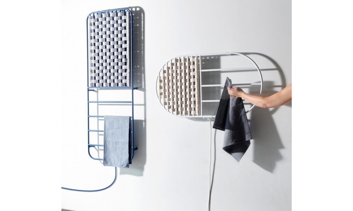 Woven Warmth di Alica Pola KnabeUn termoarredo da bagno ingentilito da linee curve, colori pastello e dalla presenza del feltro, che è in grado di trattenere ed emanare calore anche dopo che lo scalda salviette è stato spento.