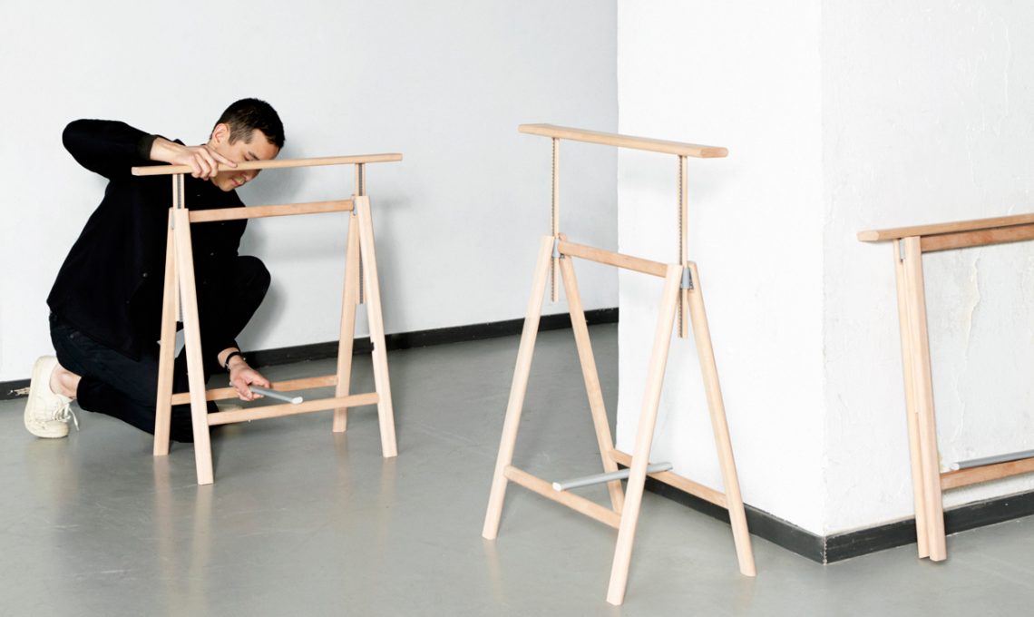 New Normal Trestle di Nathan ChanUn progetto semplice ed efficace: una nuova versione del classico cavalletto, che si può regolare in altezza, grazie a cerniere che consentono anche una diversa inclinazione delle gambe.