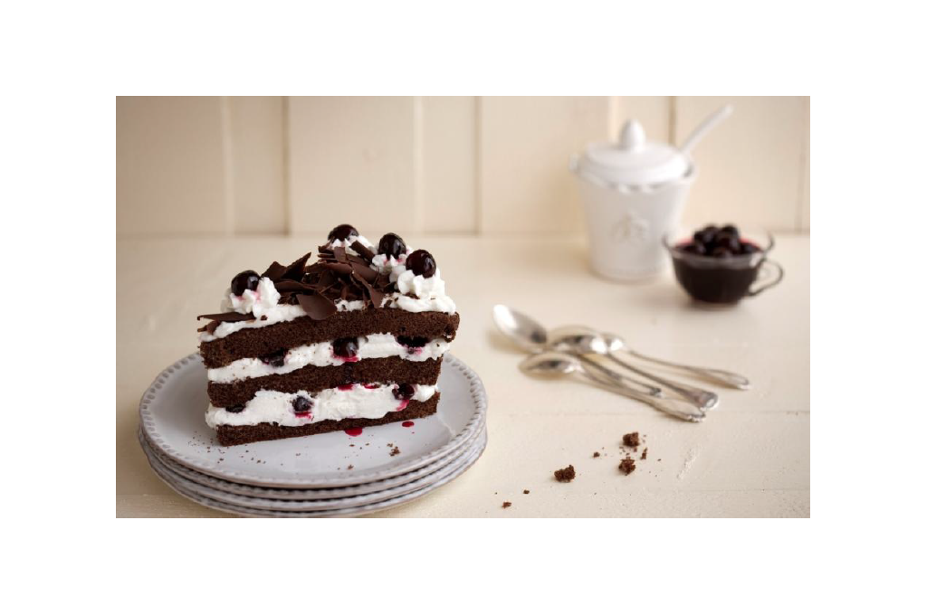 Una volta cotto, togliere dallo stampo ed eliminare il biscotto superiore con l’aiuto di un coltello. Tagliare il dolce in 2 dischi. Bagnare la superficie del disco inferiore con un po’ di sciroppo all’Amarena. Aggiungere le Amarene intere e alcune gocce di kirsch.