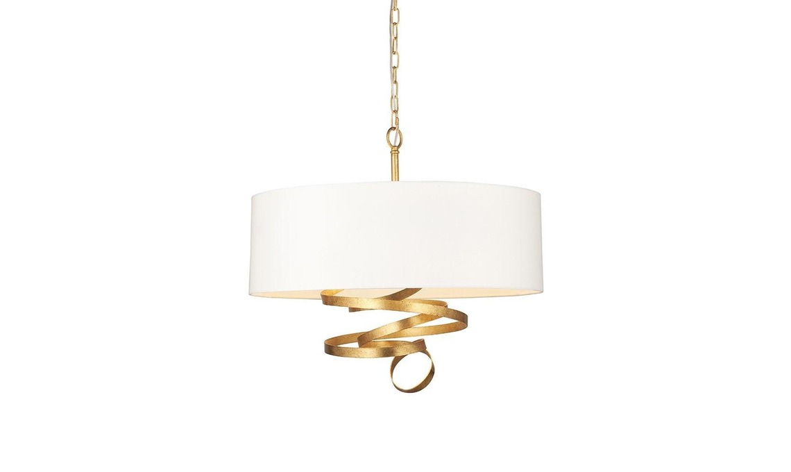 7. In acciaio foglia oro e diffusore in cotone la lampada Sanremo 3 [Netlighting, ø cm 60x80h].