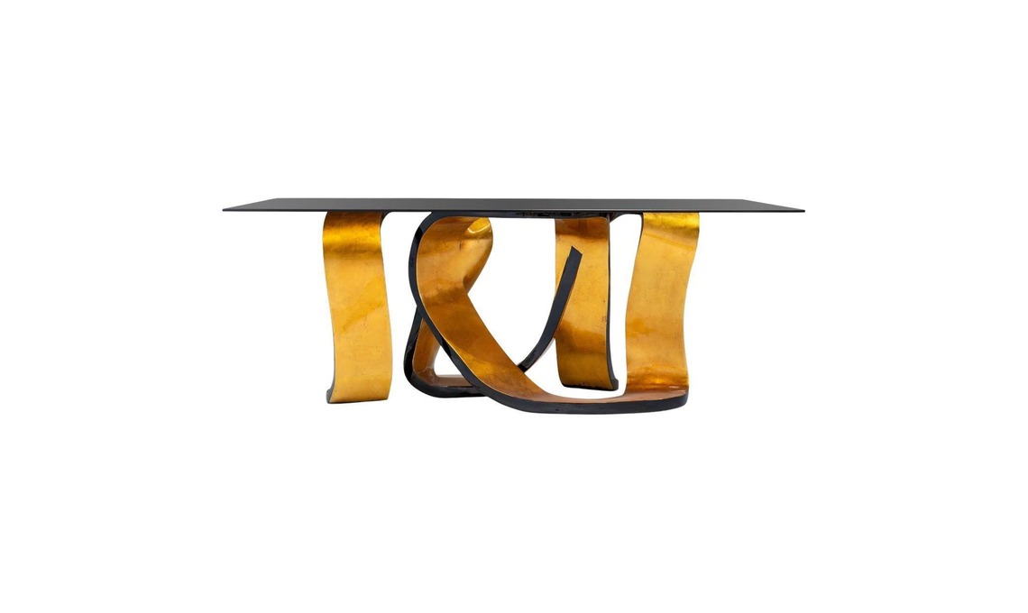 17. Scenografica la console Tie Gold in legno foglia oro [1stDibs, cm 160x50x90h].