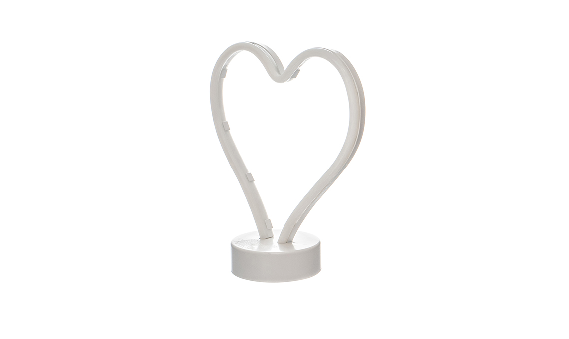7. Kasanova propone una lampada led a forma di cuore, un accessorio ideale per creare un'atmosfera unica. La luce brillante del led dona alla silhouette del cuore un colore fluo.