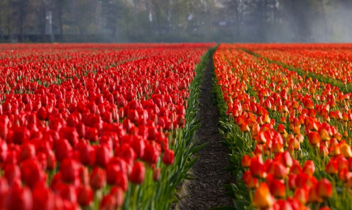 Un campo di un ettaro tutto piantato a tulipani a Cornaredo (Milano): l’idea è di due olandesi, Edwin e Nitsuhe, che hanno scelto l’Italia per questa curiosa iniziativa.