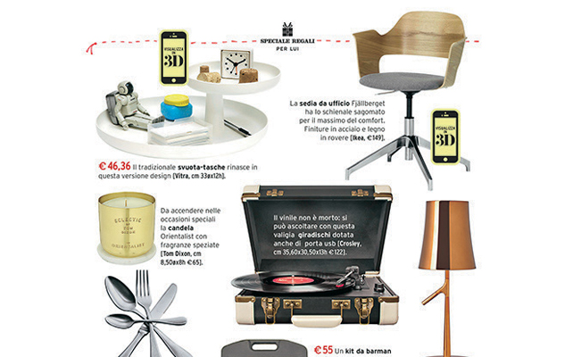 Tra le pagine trovi anche il simbolo ‘compra con un clic’. Segui sempre le istruzioni che trovi descritte sopra per visualizzare l’oggetto in 3D dove preferisci, ma ricorda che puoi anche comprarlo subito tramite lo shop online!