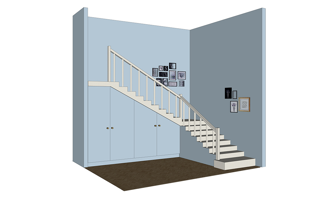 La soluzione più classica è quella che chiude completamente il sottoscala creando una comoda armadiatura su misura. Il tutto può essere ‘mimetizzato’ colorando le ante con la stessa tinta utilizzata per le pareti.