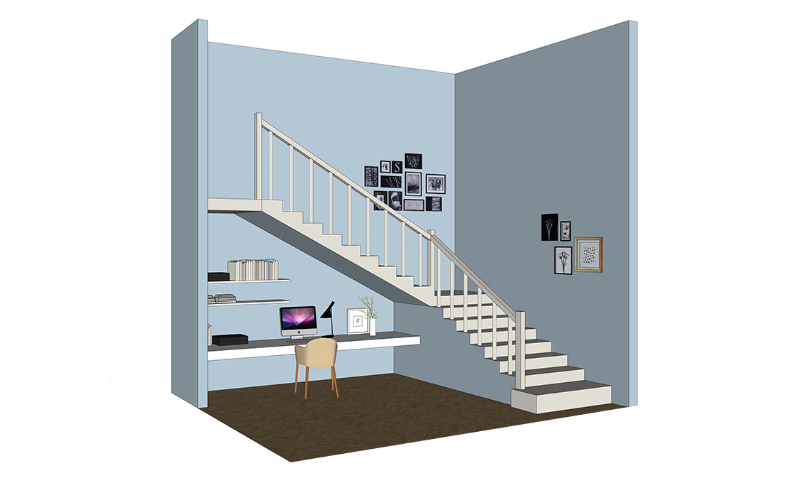 Il sottoscala può diventare un’utile postazione per il computer: con una lunga mensola si realizza la scrivania e altri piccoli scaffali saranno utili per ospitare e tenere in ordine documenti, libri e riviste.