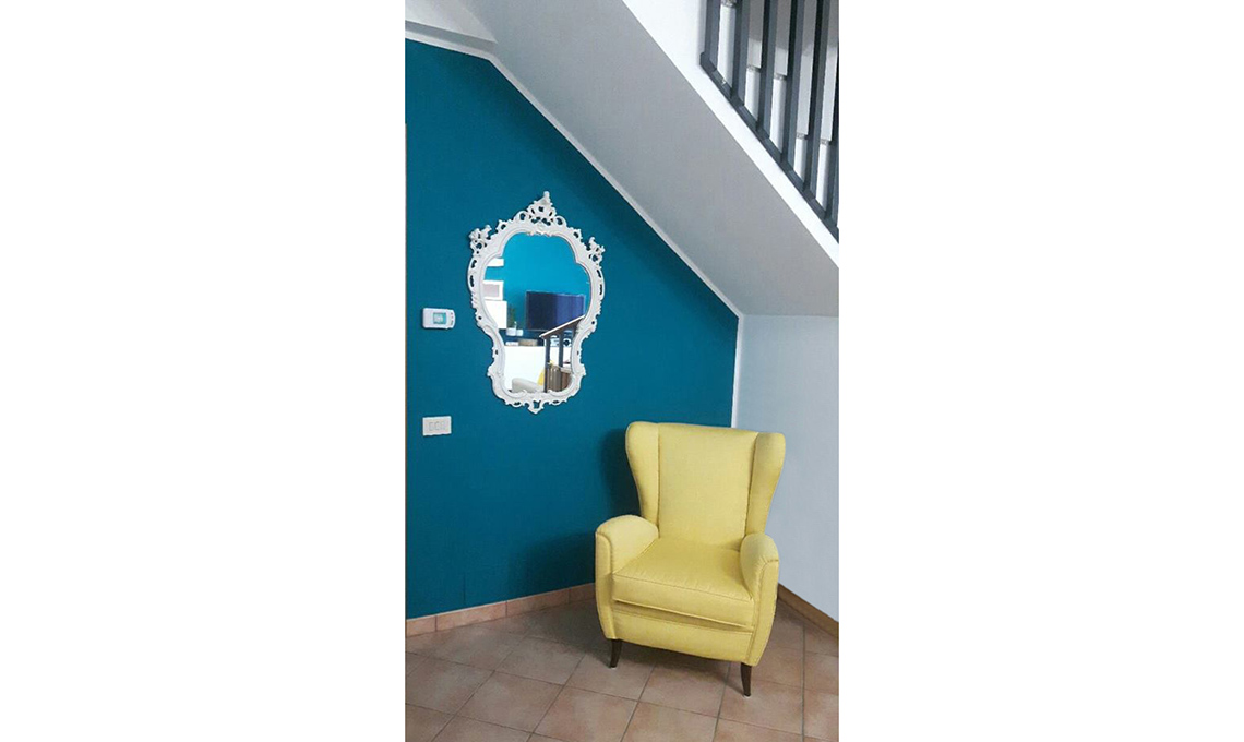Il prima: "Cara CasaFacile, vorrei qualche consiglio su come completare questo angolo lettura che ho ricavato in salotto, proprio sotto la scala. Vorrei mettere un tavolinetto, una lampada a piantana, magari un mobiletto basso sotto lo specchio."Chicco
