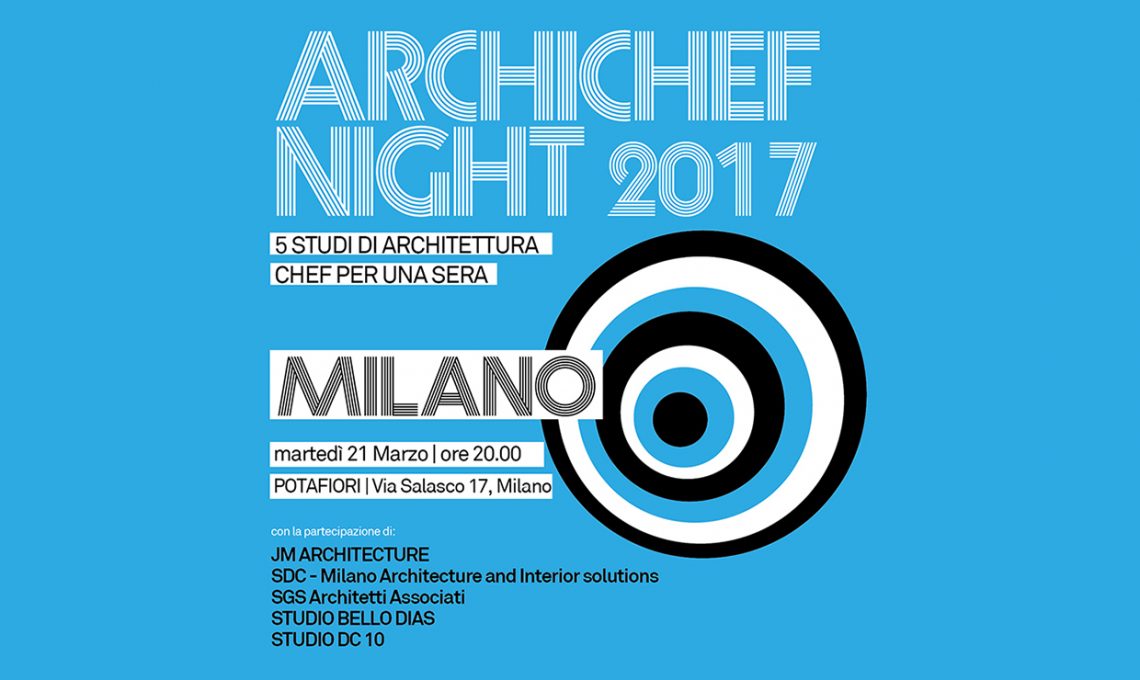 Martedì 21 marzo riparte da Milano la Archichef Night 2017, l'evento che mette dietro ai fornelli cinque architetti. Gli studi coinvolti in questa prima tappa milanese sono JM Architecture, SGS Architetti Associati, Studio DC 10, SDC Milano Architecture and Interior Solutions, Studio Bello Dias.