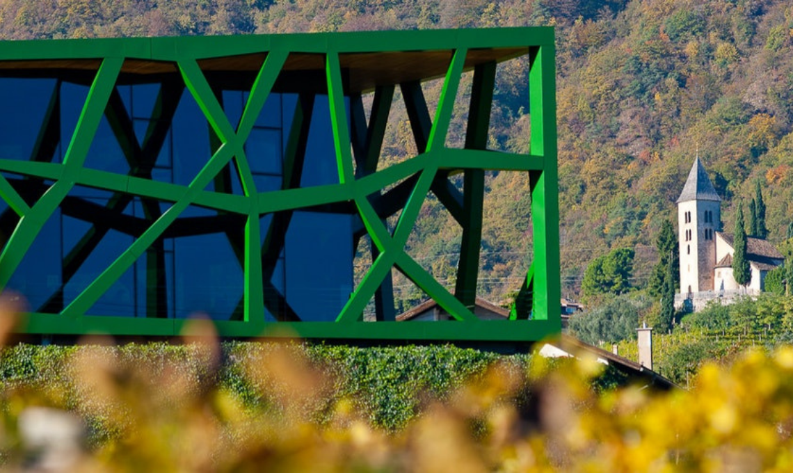 architetto altoatesino Werner Tscholl, pioniere dell’architettura nell’arco alpino, che utilizzando legno, ferro, vetro e cemento si è ispirato ai tralci della vite, elementi strutturali della sua scultura-progetto, in grado di coniugare enologia e design con una struttura concepita ad alto risparmio energetico.