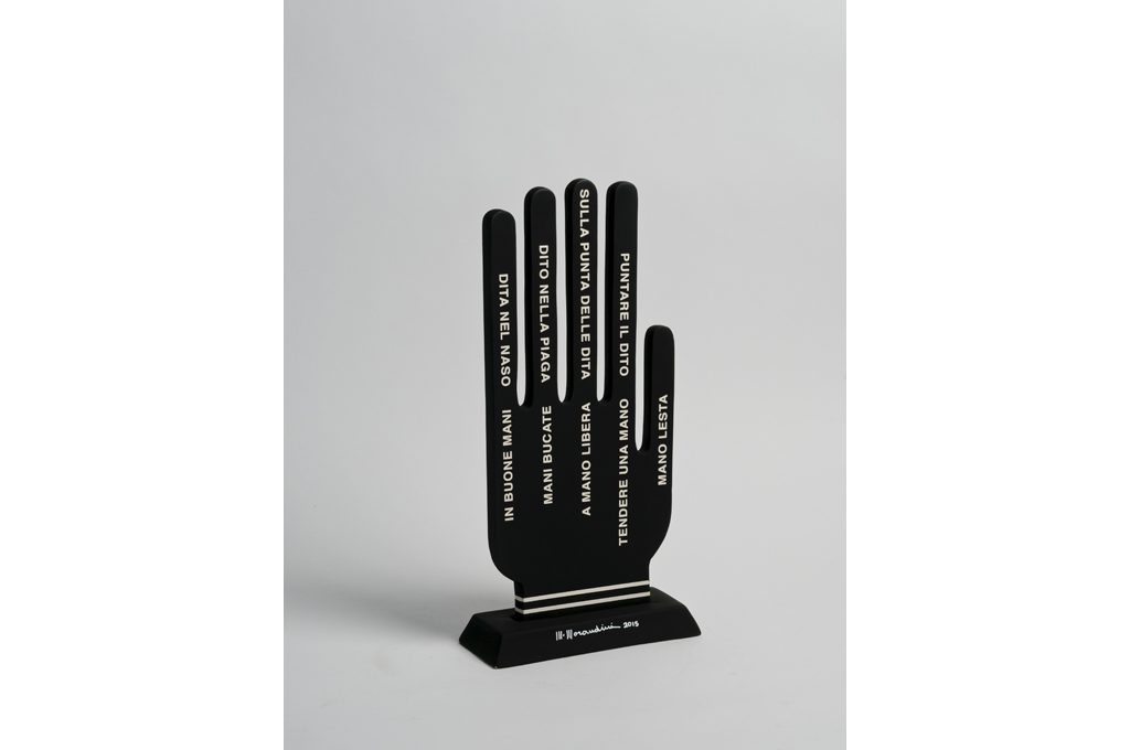 'Normali Meraviglie La Mano' (ingresso gratuito) è partita dall'idea di Alessandro Guerriero, fondatore dello storico gruppo di design Alchimia, e Alessandra Zucchi, e ha dietro di sé un percorso articolato: il primo passo è stato affidare a Mimmo Paladino, artista della Transavanguardia, il disegno della mano.