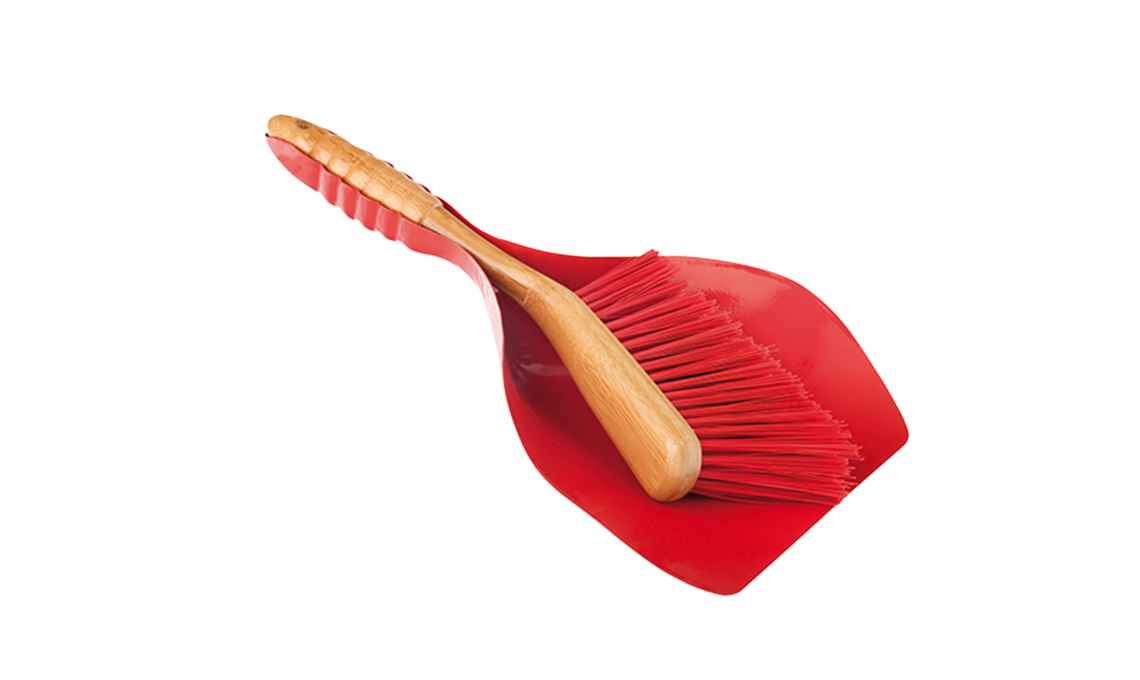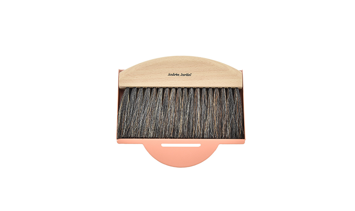 La spazzola in crine di Menu si infila nel manico della paletta [Made in Design, cm 24x33 € 69,95].