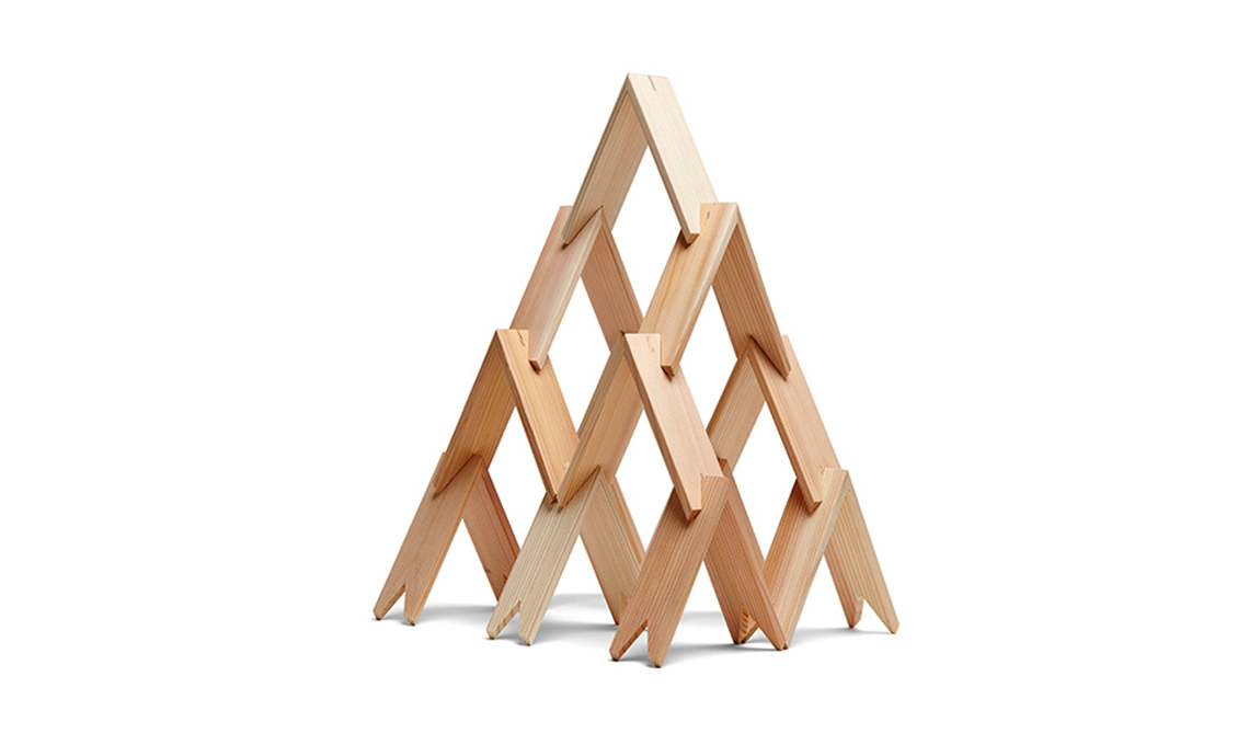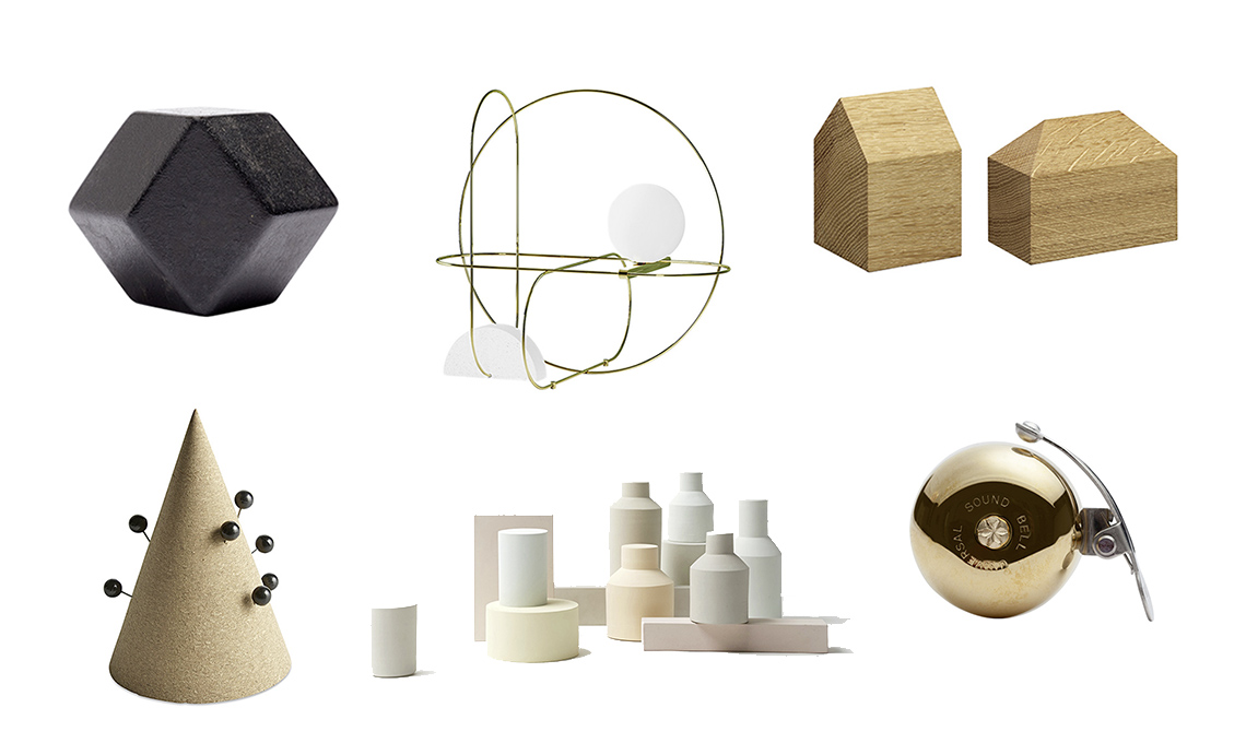 cilindri & co. in porcellana e grès, nei toni pastello. Construct II, 4 pezzi [Officine Saffi, €800].