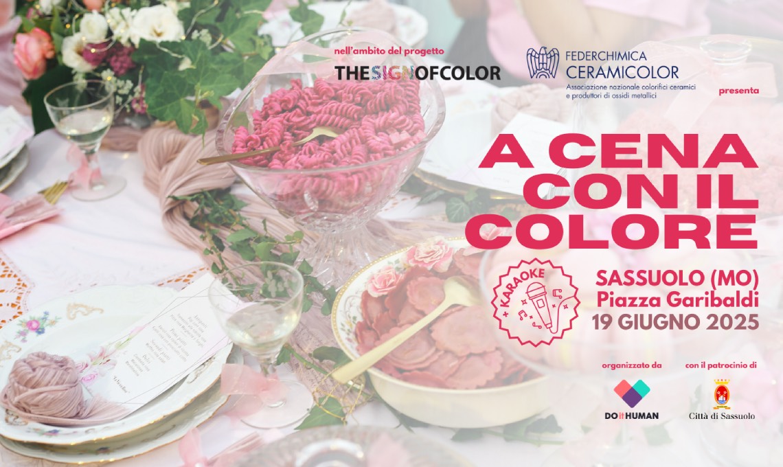 Giovedì 19 giugno, nella cornice di Piazza Garibaldi a Sassuolo (MO), torna A Cena con il Colore, l’appuntamento ideato da Ceramicolor – Federchimica, in collaborazione con il progetto editoriale Thesignofcolor. Un’occasione per vivere la città attraverso una cena all’insegna dell’armonia cromatica, dell’arte di decorare e della condivisione.