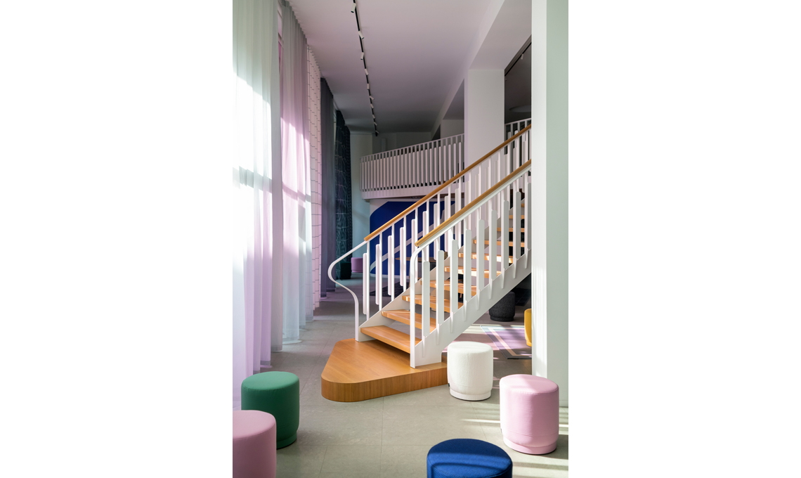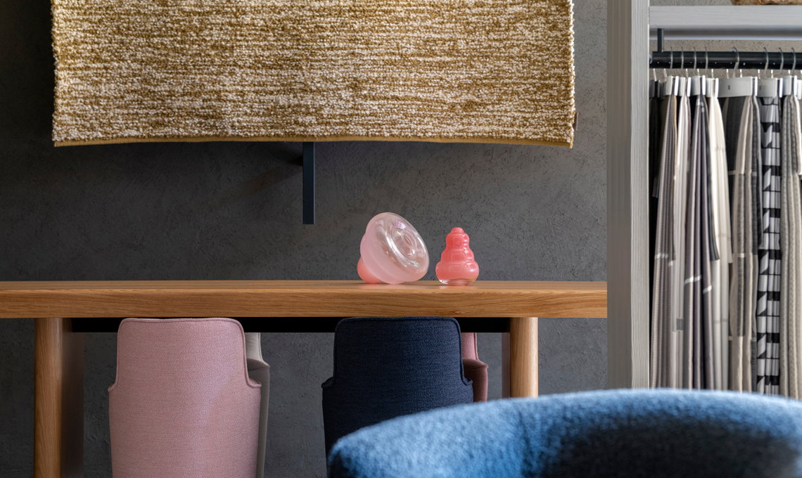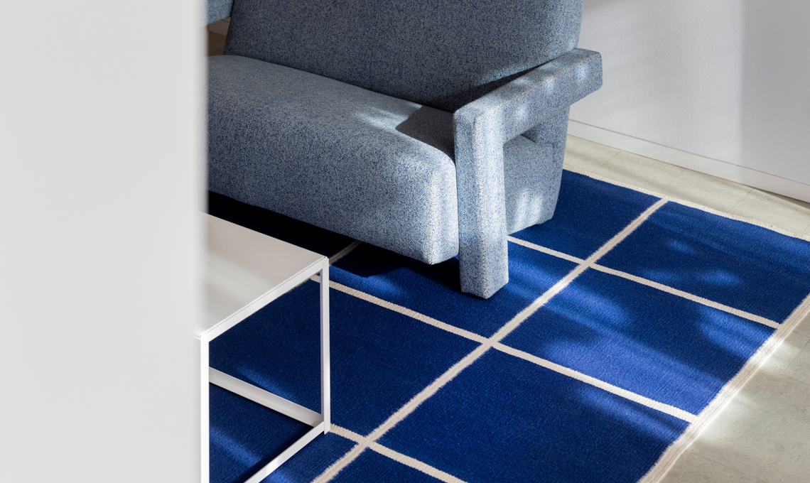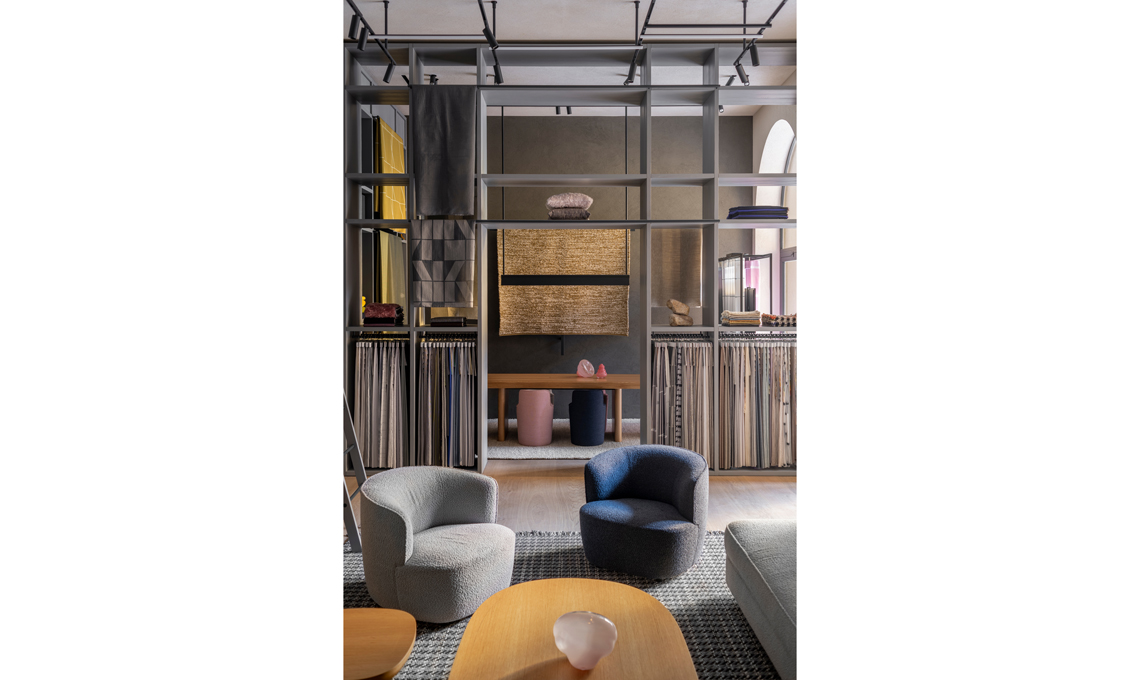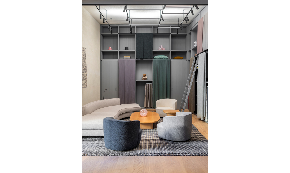 Sempre nello showroom è possibile scoprire il tappeto a trama piatta Dashes di Daniel Costa, che reinterpreta il classico pattern del pied de poule, e le nuove collezioni di tessuti di design, come Vanir (in collaborazione con Raf Simons) e Arda (in collaborazione con Studio Front).