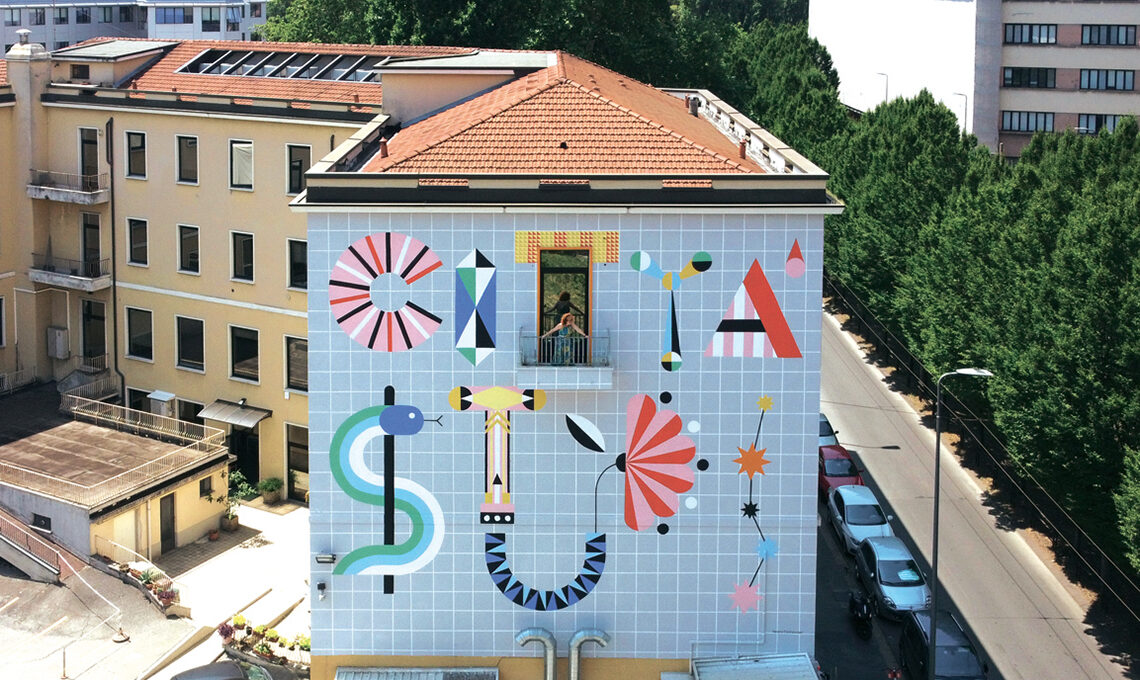 Lei è Serena Confalonieri, designer dallo stile personale e giocoso. Le sue coloratissime geometrie decorano la parete dell’edificio sede dell’AVIS, in via Bassini 26, a Milano.