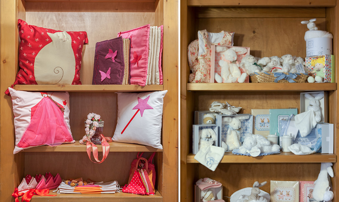 Per chi non sa ricamare Sabine esegue su ordinazione ricami e decori e organizza lezioni di ricamo nell'area soppalcata del negozio dove si tengono anche i 'lab merenda' per bambini e corsi patchwork per adulti.