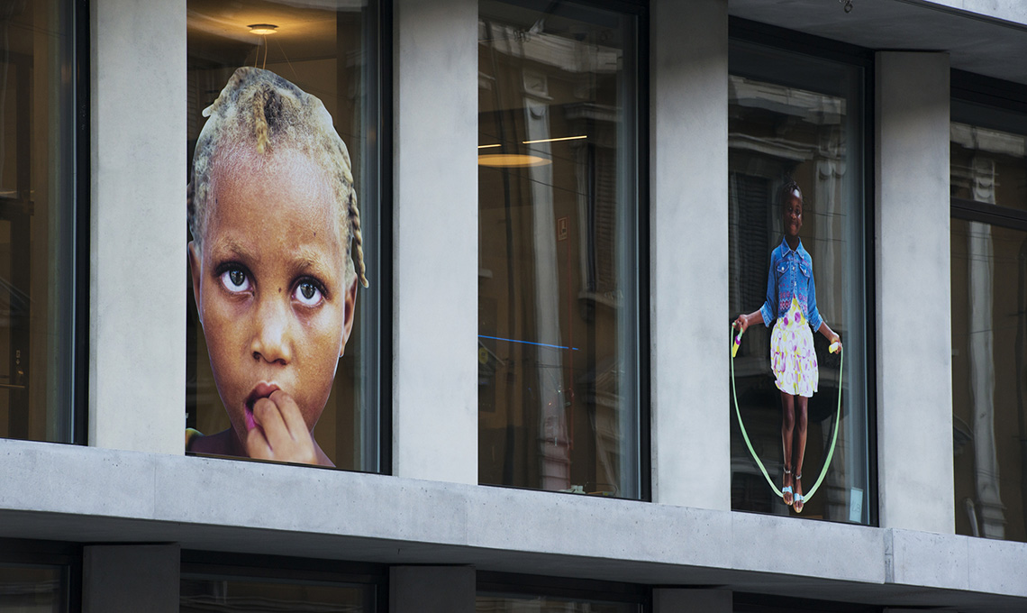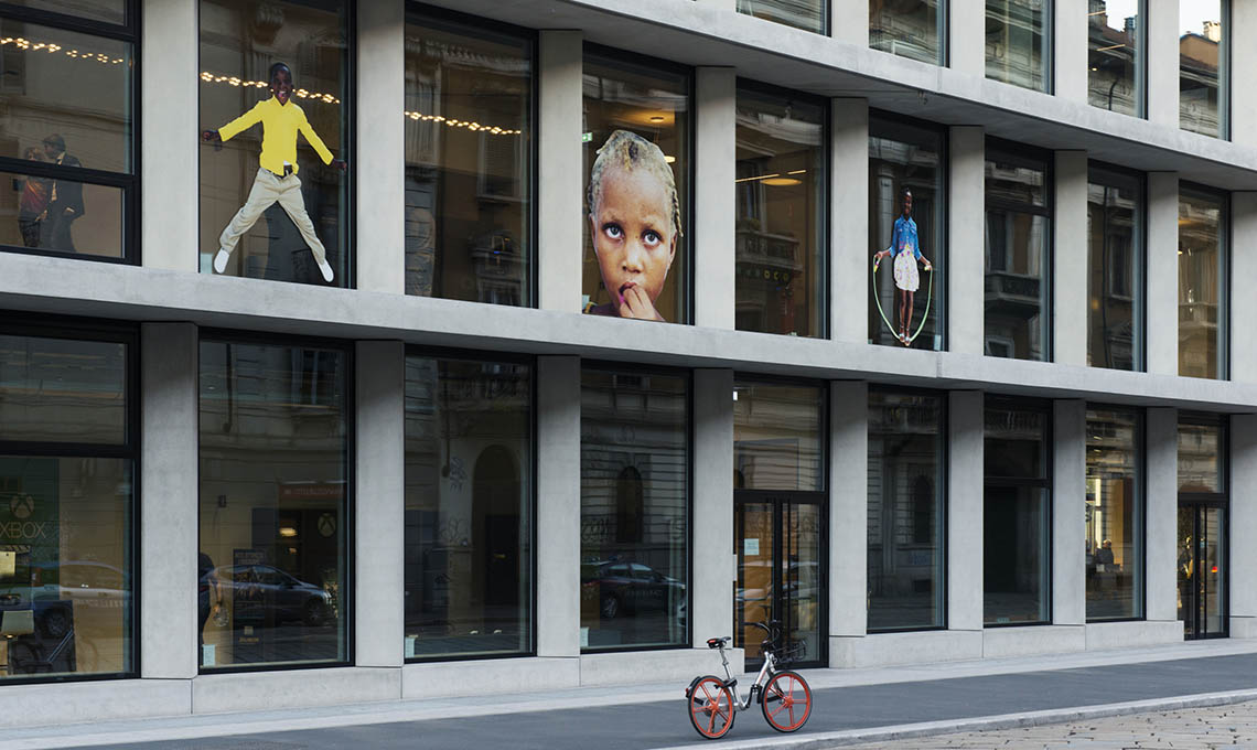 'Ey You!' è il racconto fotografico dei bambini di Haiti ritratti dal fotografo Stefano Guindani che da domani 22 novembre 2017 colorerà le vetrate della facciata della Microsoft House a Milano.