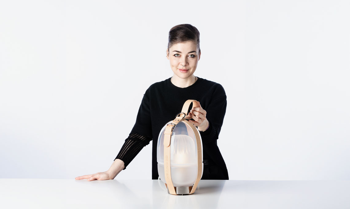 La designer ceca Kateřina Handlová che ha disegnato la lampada in vetro soffiato con cui sono stati premiati i progettisti vincitori. Kateřina viene da una famiglia di maestri vetrai e questo, insieme a suggestioni legate alla passione per la moda, le ha ispirato la moderna lanterna in vetro soffiato
