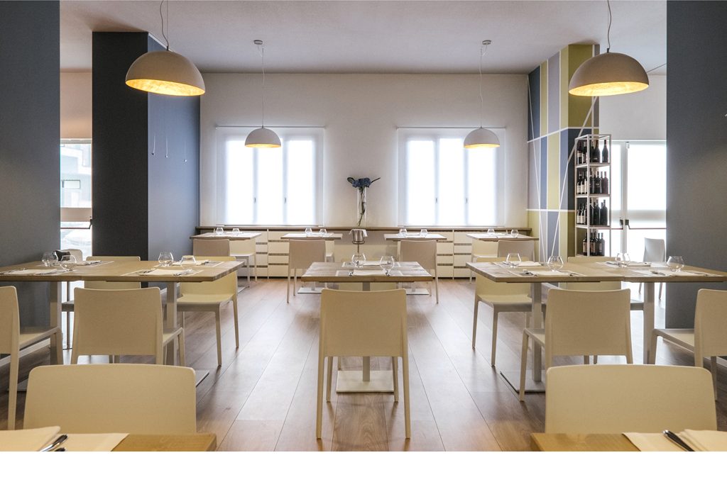 E il locale? L'architetto Augusta Comi ne ha curato l'allestimento: “L’idea progettuale del ristorante InGalera nasce dall’osservazione delle linee essenziali e rigorose tipiche degli ambienti delle strutture carcerarie, luoghi in cui l'aspetto funzionale è tenuto in grande considerazione. L’uso dei colori pastello, che riprende il tema delle cornici delle finestre della facciata, dona all’ambiente un carattere di leggerezza e elegante sobrietà”. E per questo ambiente accogliente e luminoso ha fortemente voluto gli arredi di design di Pedrali: i tavoli Inox con base verniciata bianca e le sedie Volt, con e senza braccioli in bianco e beige.