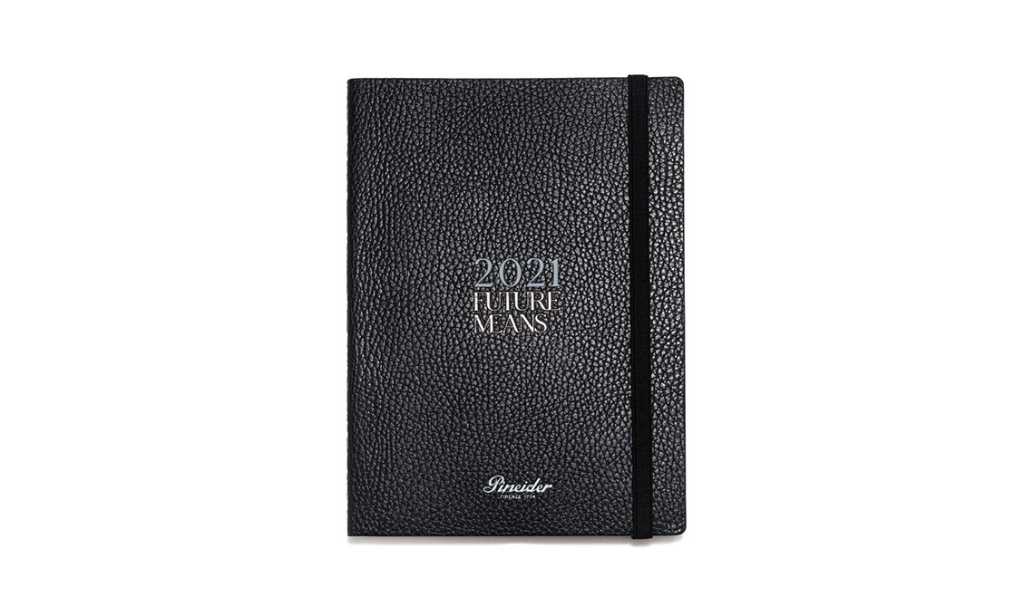 • Realizzata artigianalmente a Firenze da Pineider, l’agenda Future Means è rivestita in pelle di vitello bottolato e caratterizzata dalle pagine in carta color avorio acid free.
