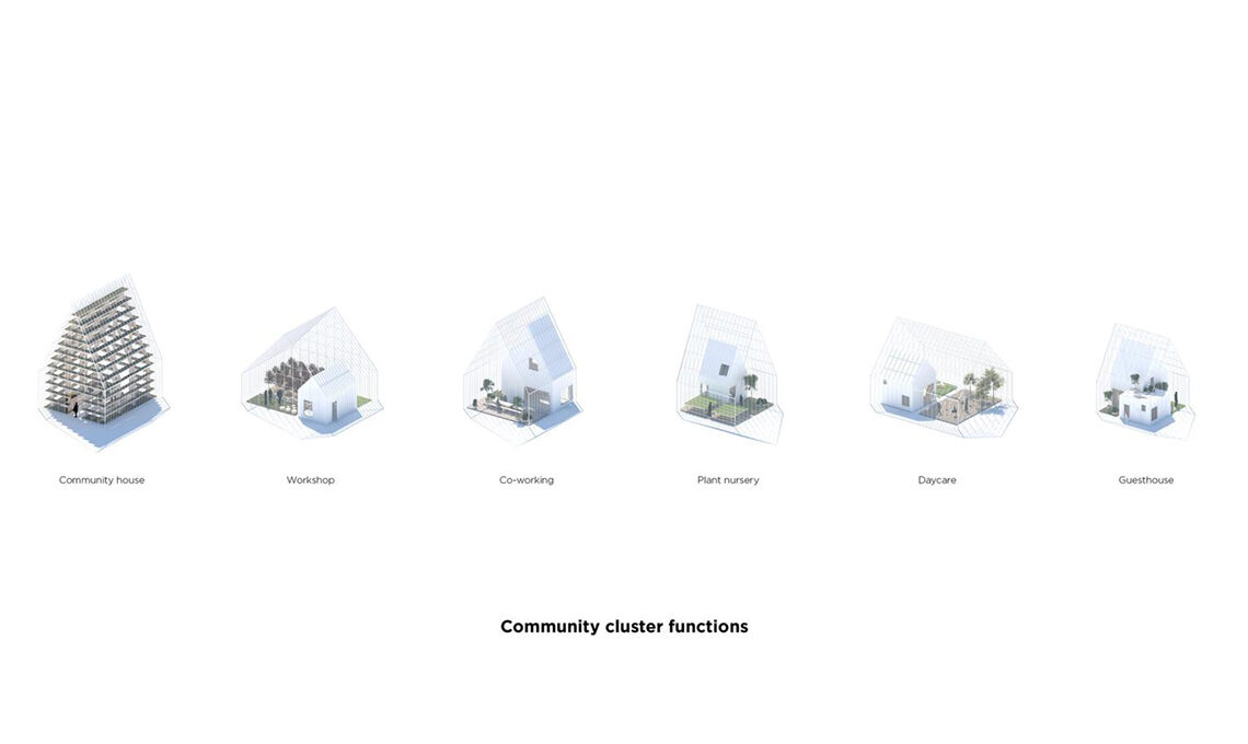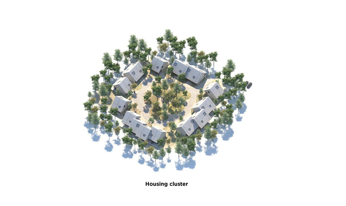 A Naturbyen, le case saranno disposte in gruppi di 15-25 intorno a un cortile comune. Ogni casa avrà accesso diretto a terrazze private più piccole, una verso il cortile e l'altra verso il bosco. Il paesaggio e gli spazi tra le case saranno condivisi tra i residenti e destinati a scopi ricreativi e sociali.