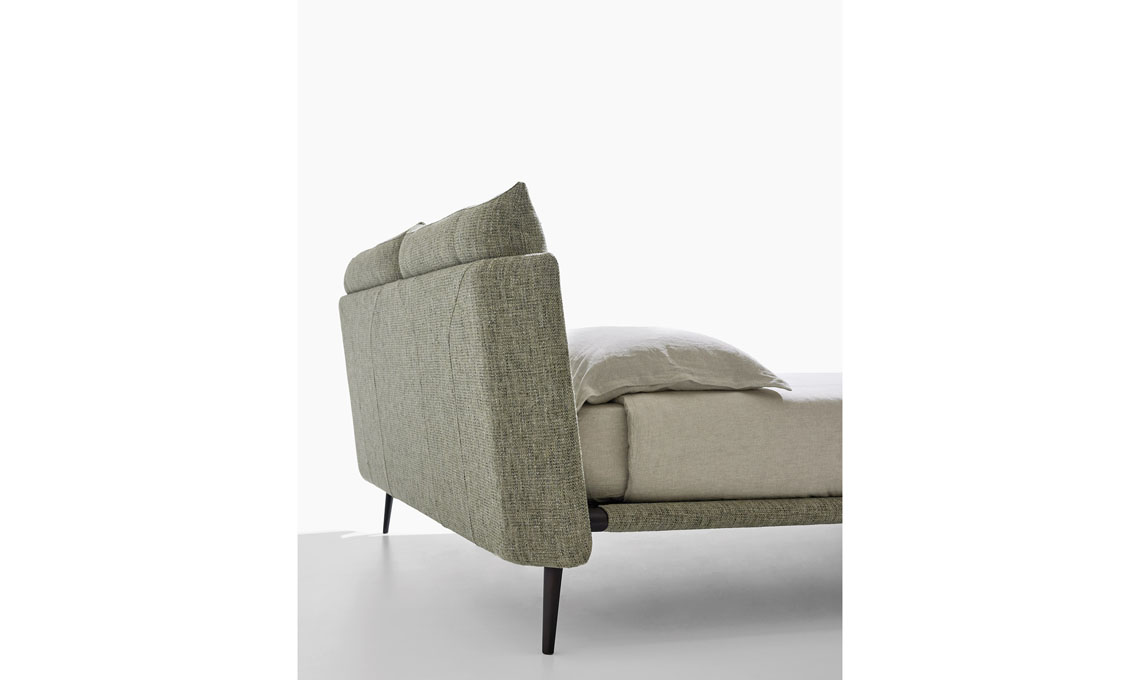 Letto sfoderabile Teda [Alto], design Maurizio e Silvia Varsi, rivestimento in tessuto Fabula 0024. Struttura e piedi a coda di balena in legno di frassino alta qualità, colorazione wengè.