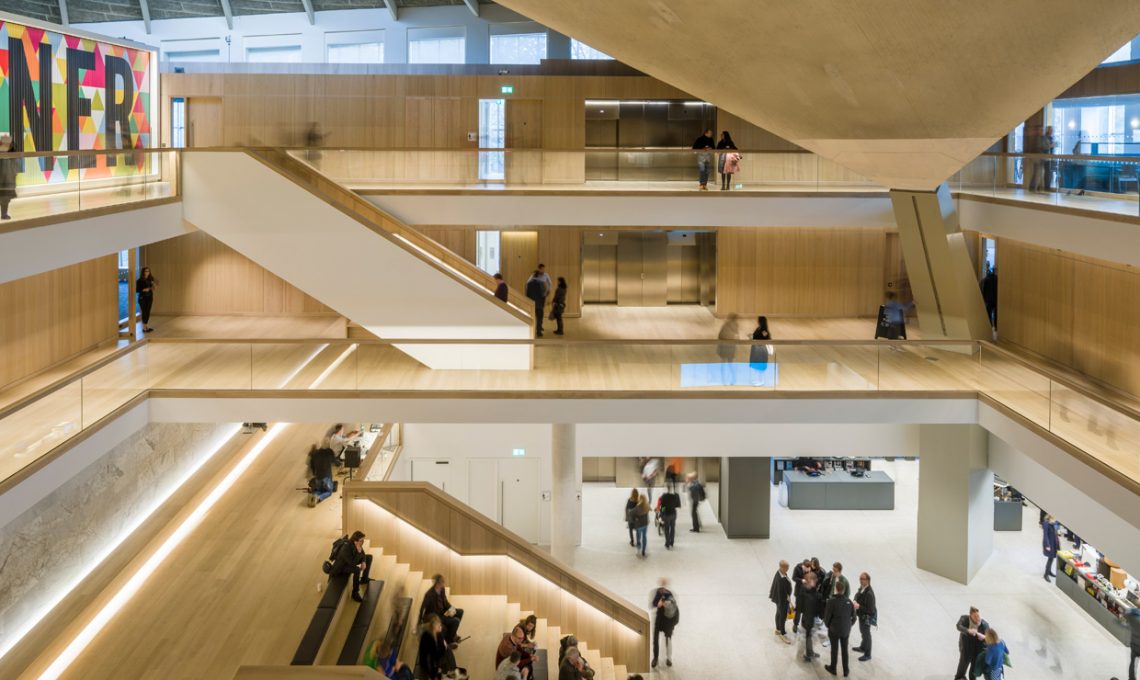 Lo spettacolare tetto in cemento dell'edificio e la facciata sono state conservate, mentre l’interno è stato rimodellato con una serie di spazi ampi che si aprono intorno all’atrio e incorporando elementi chiave della struttura originale.