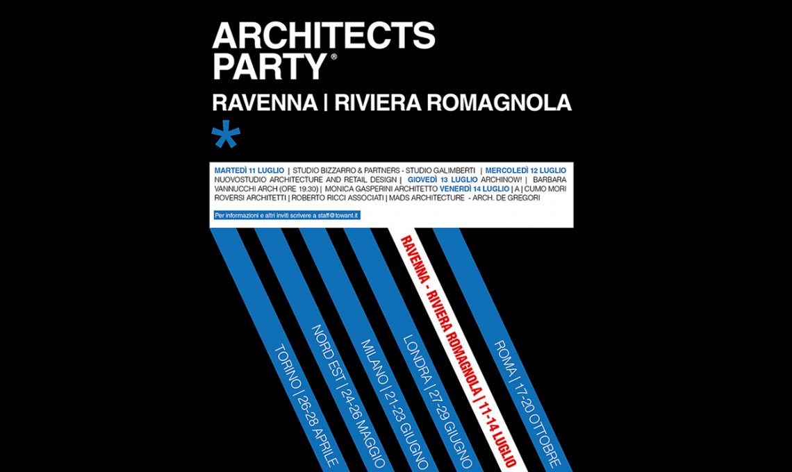 Dall’11 al 14 luglio ArchitectsParty Summer Edition arriva a Ravenna e sulla Riviera Romagnola a Rimini e Cattolica. Gli aperitivi negli studi d’architettura riscuotono successo in tutta Italia e all'estero tra gli appassionati di settore e gli addetti ai lavori, l'occasione per visitare le location creative in genere accessibili a pochi.