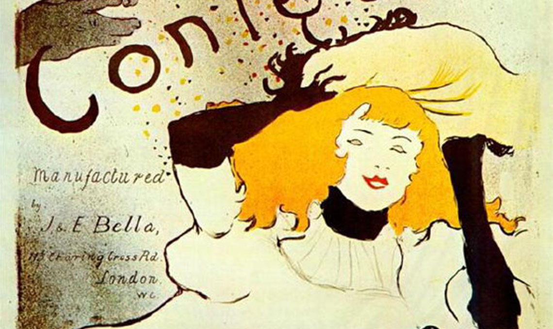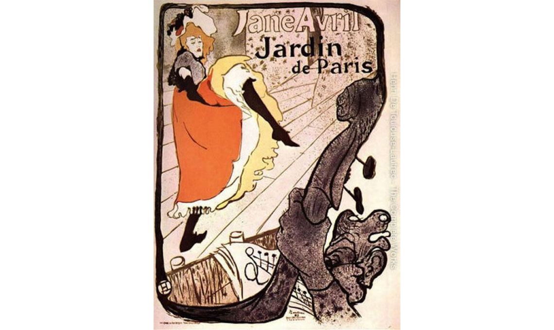 Instancabile sperimentatore, di origini aristocratiche e di spirito libero (ritrasse i bassifondi di Parigi e il mondo della case chiuse), Henri de Toulouse-Lautrec (1864-1901), oltre che l'astro di Montmartre e il pittore del popolo parigino della notte, è stato un antesignano della grafica. Il primo a tratteggiare degli archetipi di regole in questo campo: campiture di colore, stilizzazione del segno, dimensione delle figure. L'artista bohémien sapeva perfettamente che i manifesti devono essere visibili da lontano e su questi aspetti ha lavorato con risultati sorprendenti e modernissimi.