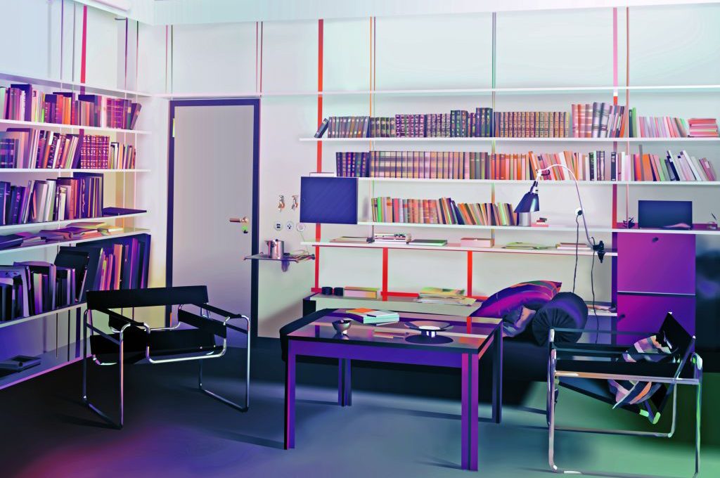 Se hai un'idea sbiadita del Bauhaus, è a causa delle foto d'epoca in b/n; il giovane fotografo Adrian Sauer ha elaborato in digitale l'immagine dello studio di Walter Gropius, fondatore della scuola: i colori lo rivitalizzano
