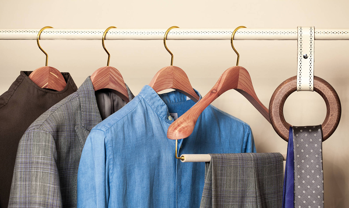 - Puoi organizzare i piccoli accessori come collane, cravatte, foulard utilizzando appositi supporti da appendere all’asta del guardaroba.