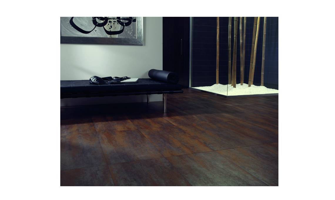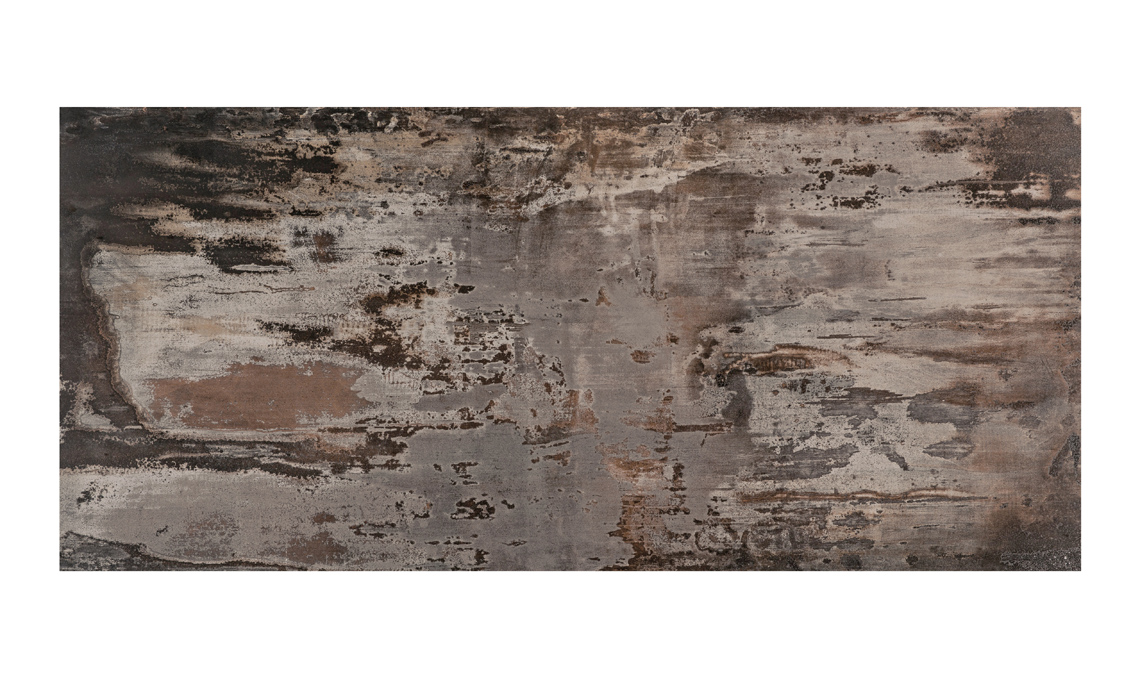 Ossido Bruno (in foto, ma c'è anche la versione black, Ossido Nero), è una proposta di lastre ceramiche di grande formato e minimo spessore, per superfici che regalano nuove prospettive e creano un inatteso impatto visivo. Dalla tradizione artigianale del ferro emergono texture che coniugano tecnologia e arte e possono essere utilizzate per rivestire le cucine ma anche per grandi tavoli e superfici in genere [Laminam].