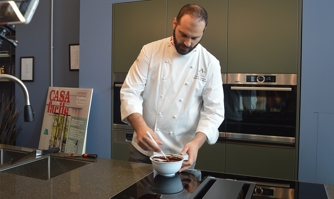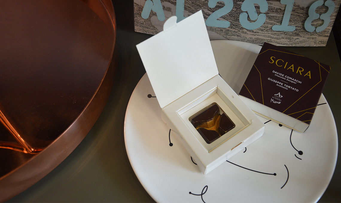 Si comincia con uno show cooking all'insegna della golosità. È infatti il turno di Davide Comaschi, maestro cioccolatiere, che con l'architetto Giuseppe Tortato, hanno inventato Sciara, "il cioccolatino d'architettura". Sciara è una pralina in lamina d’oro e cioccolato fondente, presentata in anteprima nazionale proprio durante il Salone del Mobile 2018.