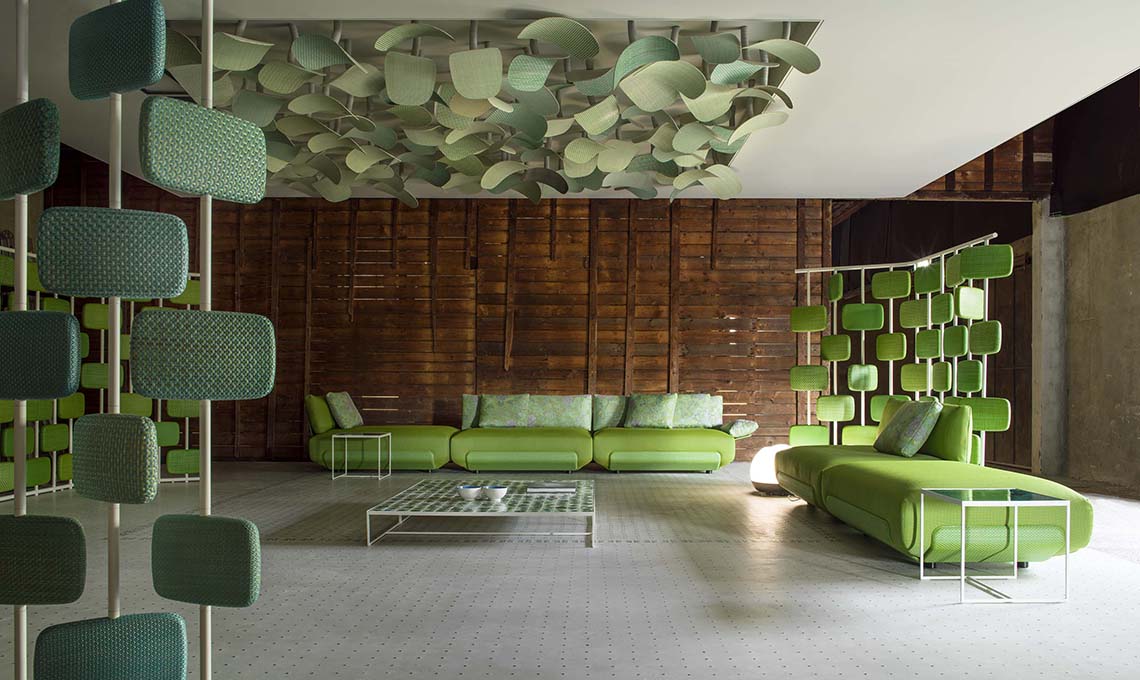 Uno dei progetti più importanti di quest'anno è stato la realizzazione di una collezione ideale per all'ambiente contract. Una collezione che riassume le caratteristiche che da sempre fanno parte dell'alfabeto progettuale dell'azienda: una forte connotazione "tessile". Per questa nuova sfida abbiamo studiato un filato e un materiale completamente riciclabili, uniti da una tecnica brevettata che rende unico e coerente con tutta la nostra offerta commerciale il risultato ottenuto.