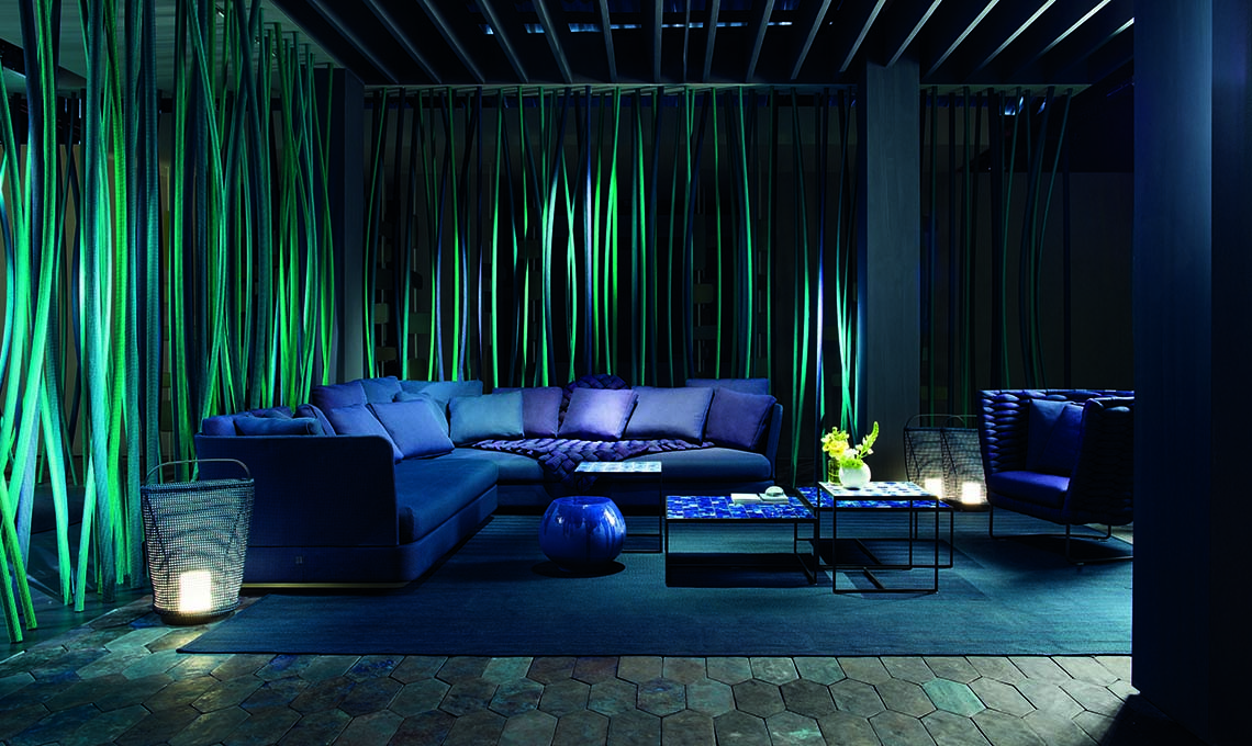 Indoor e outdoor presuppongono materiali con prestazioni diverse. Perciò proponiamo due collezioni distinte, che nascono da approcci produttivi molto diversi. Ma i principi fondamentali sono comuni: la ricerca di armonia tra utilità e bellezza, l'essenzialità delle forme e la possibilità che i colori mettano in relazione sedute, tappeti, complementi e strutture architettoniche.