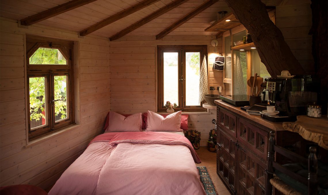 Windeck (Germania): essenziale e romantica, ha un angolo cottura con lavabo in pietra. E il bagno è una piccola perla. http://www.baumhaus-schaeferwagen.de