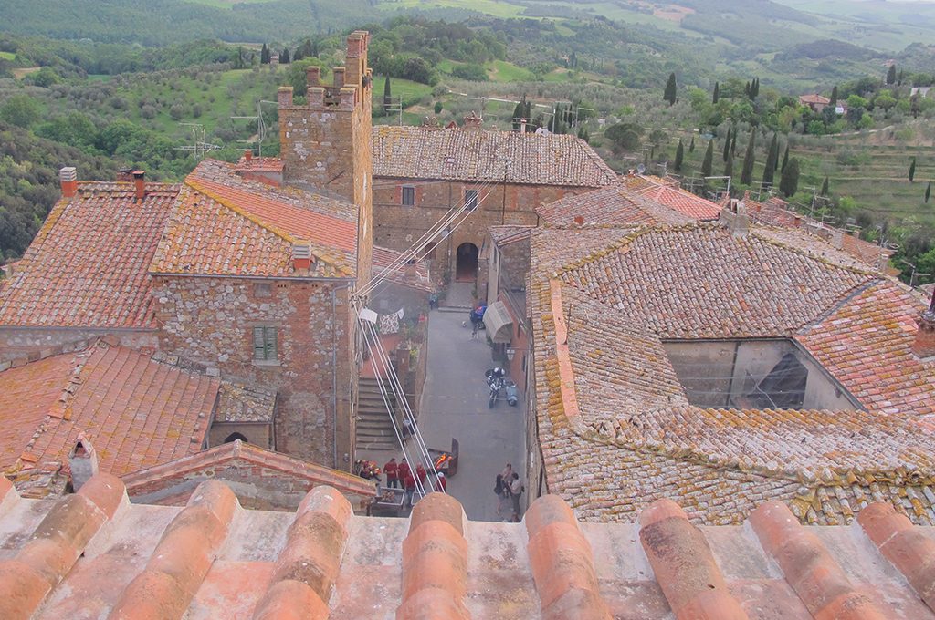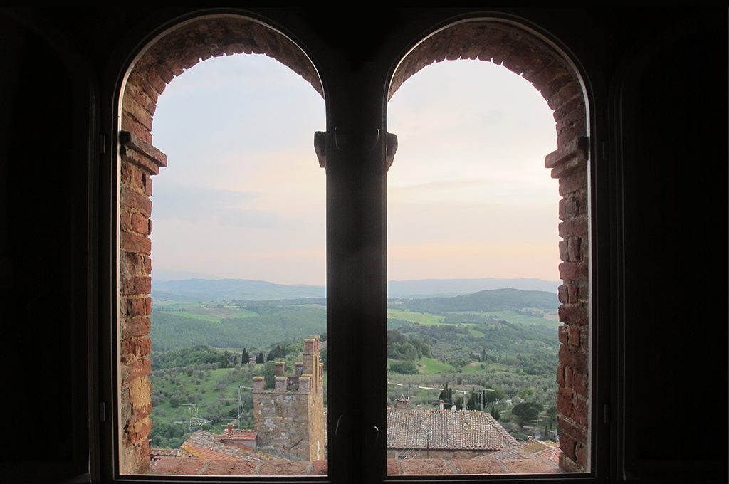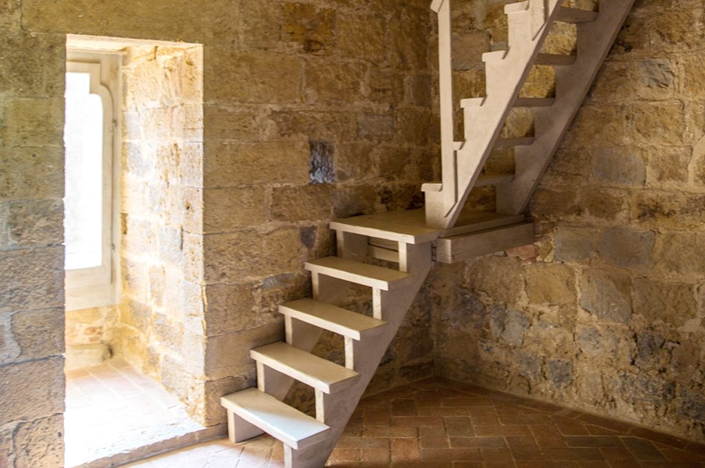 La torre medievale di Petroio è tutta in pietra arenaria, le mura sono spesse due metri e interrotte da feritoie, lasciate volutamente senza vetri... La prima scala: la salita comincia...