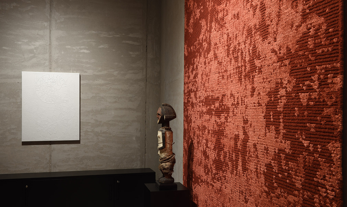 I manufatti di design tessile disegnati da Faye Toogood, Daniele Lora e Parisotto+Formenton realizzati con metodi artigianali da cc-tapis, si alternano a esemplari di arte tribale del Gabon centrale e sono accompagnati da una selezione di opere di Herbert Hamak, David Simpson, Luigi Carboni, Claudio Parmeggiani, Marcello Jori, Arthur Duff e Mats Bergquist.