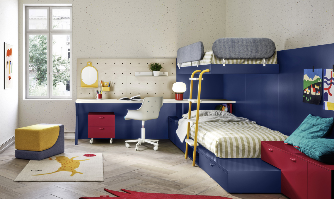Letto Hug disponibile anche con Secret Box®, un cassetto su guide e un vano contenitore che scorre all'interno del telaio del letto [Noctis, cm 210x222x110h da €1.630].