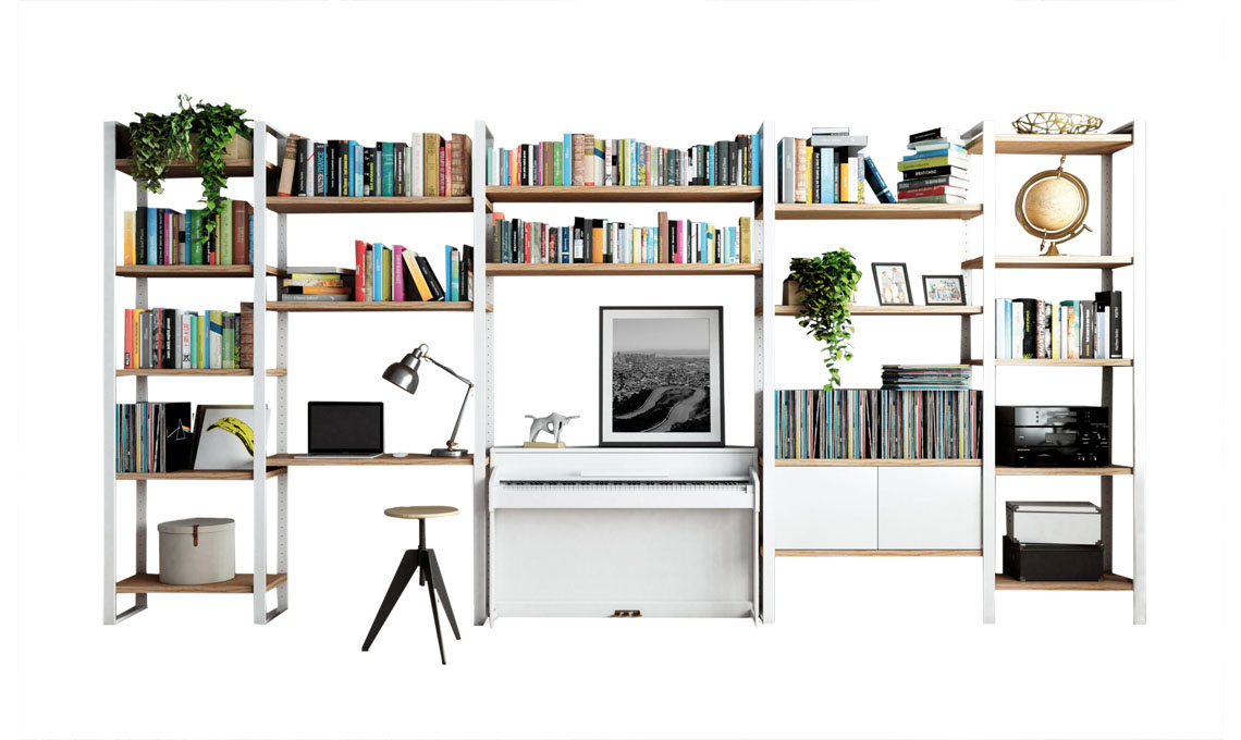 Per gli amanti della lettura, l'ideale è scegliere librerie a tutta parete e solo mobili dal design ‘leggero’, come il divano lineare, le sedie in&out, il tavolino in stile industrial.
