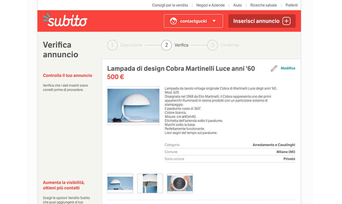 6. Una volta inserito, il tuo annuncio verrà verificato dal team di Subito e riceverai una email di conferma appena verrà pubblicato: resterà online per 62 giorni. Se scarichi la app di Subito e utilizzi la sua chat, puoi gestire le comunicazioni con i possibili acquirenti senza rendere pubblico il tuo numero di telefono. Rispondi rapidamente ai messaggi e dai tutte le informazioni.