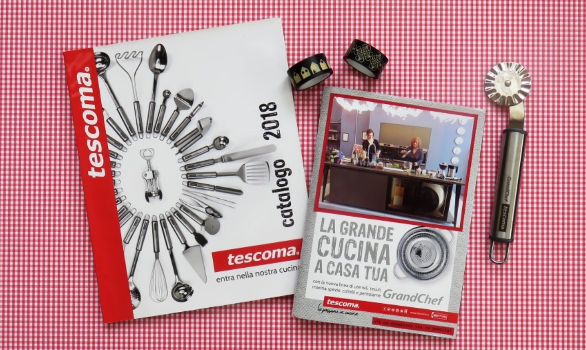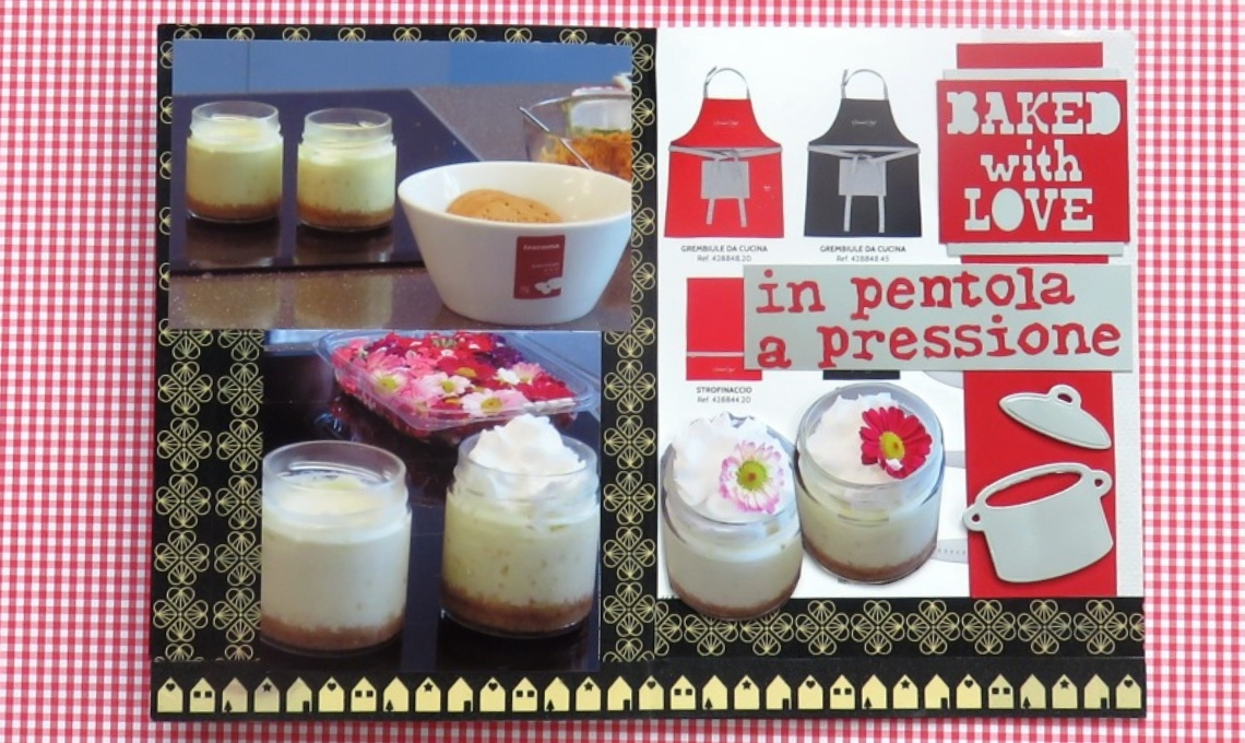 Ho deciso di utilizzare uno dei loro cataloghi, lasciandone a vista alcune parti, per ospitare le foto ricordo che ritraggono il direttore creativo Giusi con la blogger di Elena (Cucinama) ai fornelli intente a preparare un tiramisù in vasetto ornato con fiori freschi edibili.